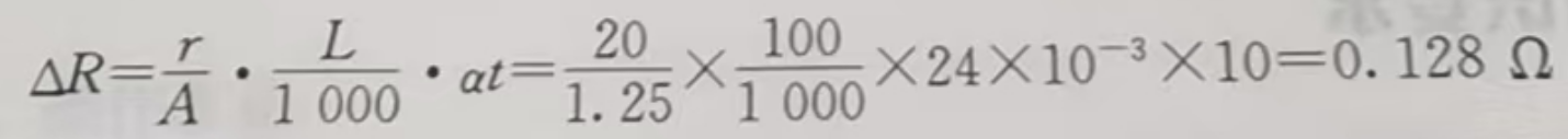 当环境温度变化t=10℃时,电缆线电阻的变化量为△R,则: