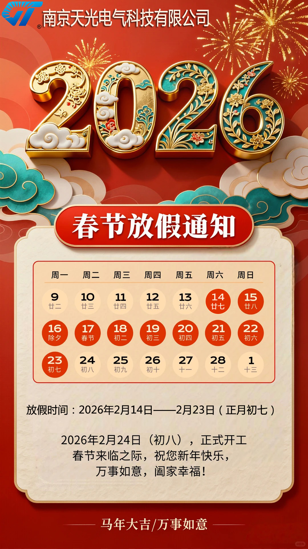 2026年春节放假通知